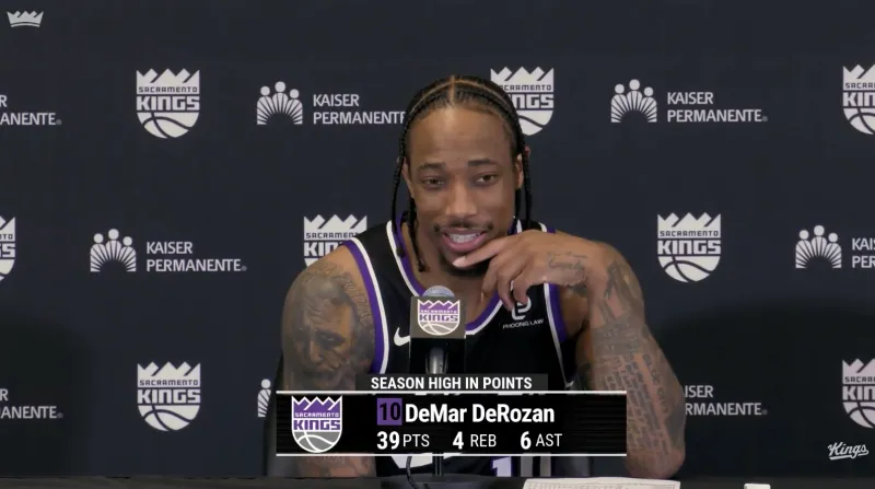记者: 德马尔,你已经在联盟打拼了这么久,经历了这么多事情。当你看到计分板上显示你的总得分超越了蒂姆-邓肯这样的球员时,那一刻你是什么感觉?考虑到你的出身和一路走来的经历,这种感觉有多梦幻?